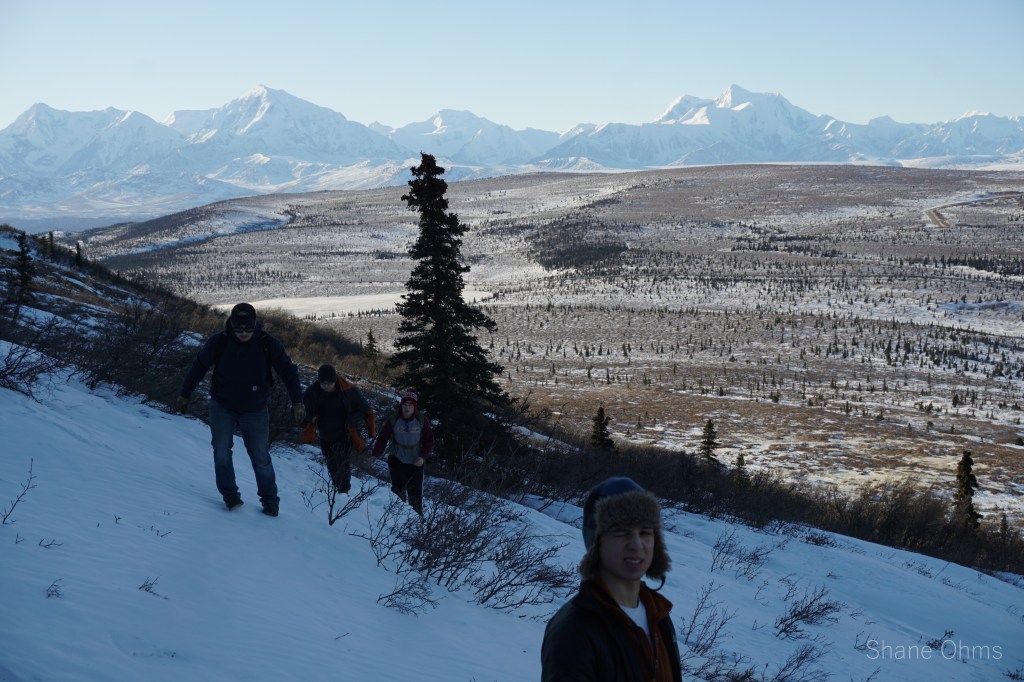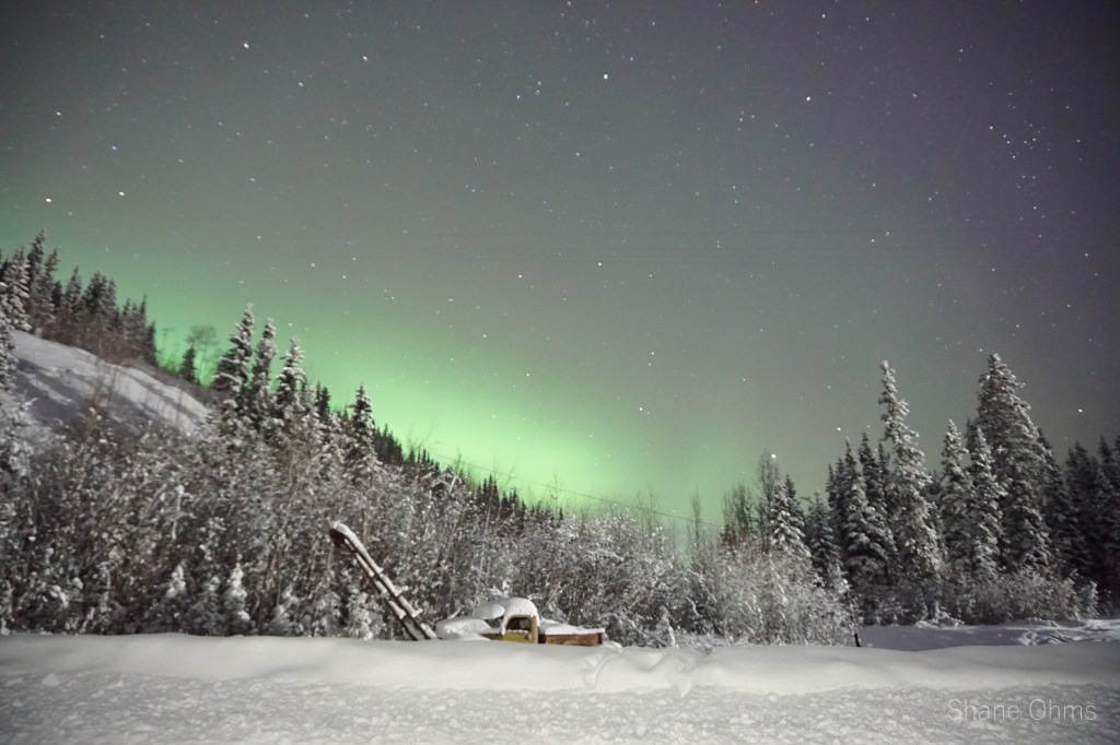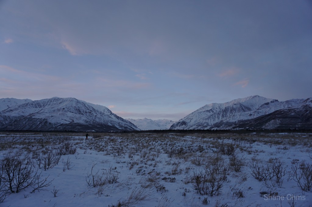 We retraced our steps back down and to camp. We quickly packed up and had a fun time (haha, not) navigating back down to our skis on hard snow and in foggy, dim light. We enjoyed no turns, but we made it down to the toe of the Black Rapids Glacier and proceeded to skin out to the car. The illumination of the Northern Warfare Training Center was a lighthouse keeping our skis on course. On the way home, we caught some faint northern lights. I’ve had (what I feel is) more than my fair share of summitless trips this winter but not a lot of disappointments.