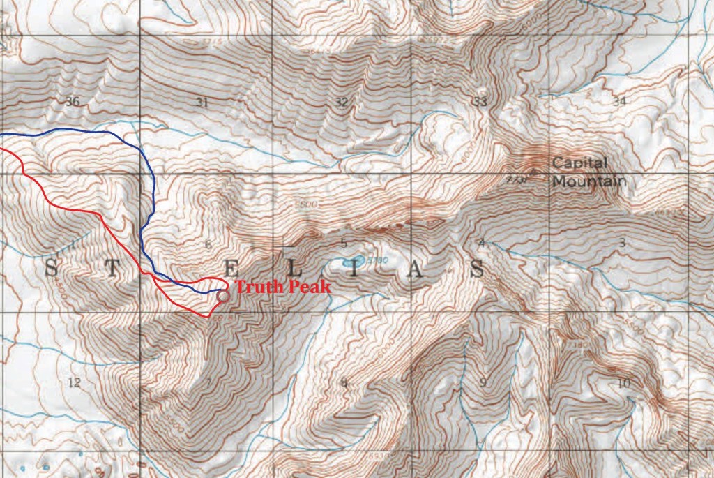 Sunday morning, March 7th, I turned 24 years old. Neil Young’s Song ‘Old Man’ resonates with my life; “24 and there’s so much more”… The 5 of us on skis set out for Truth Peak. Truth Peak is a name I’ve given to the 6800+’ point of 500′ prominence located 2.5 miles down the west ridge of nearby Capital Mountain. My GPS clocked it in at 6860′ so its a little higher and north of the point some maps show as 6818. The name is a play off of the only other named mountain nearby (Capital Mountain) and an impressionable line in a student regent’s love letter reading “I am not afraid of Truth-capital-T”. University of Alaska student regent receives calls for resignation after sending a ‘love letter’ to all students – Anchorage Daily News (adn.com). (Side note: If someone someday climbs the 6690′ peak on the east ridge of Capital Mountain could you please call it T-Peak? Thank you).