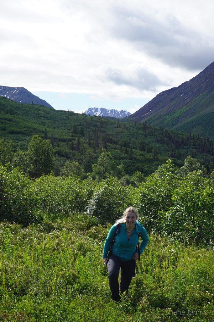 Bright and early and on a single good weather day Marianna Mallory and I drove down from Fairbanks to the trailhead for this peak. Mariana and I had only done one other trip together, and that was two Mays prior. It was on 9800′ White Princess where she held my weight in a crevasse fall up at 8000′. This trip shouldn’t bear any more thrill than that time.