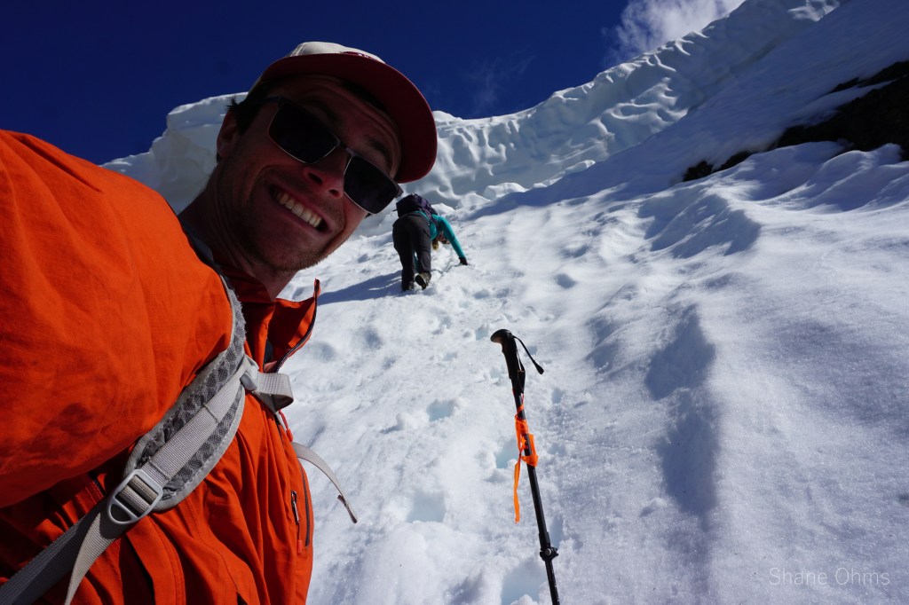 The gully was awesome. Had to get around a fat (~7′) cornice… and then we had to have that looming overhead in the heat of the day for a couple minutes as we went down. I thoroughly love good ‘boot ski’ conditions, and these were them. Boot skiing also saves the knees from impact on the descent.