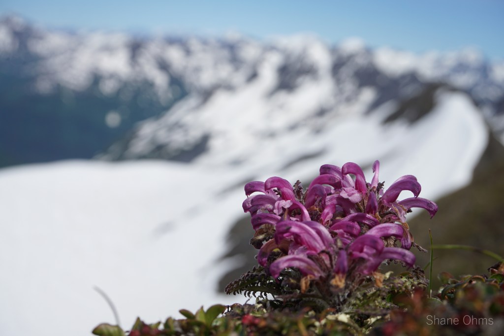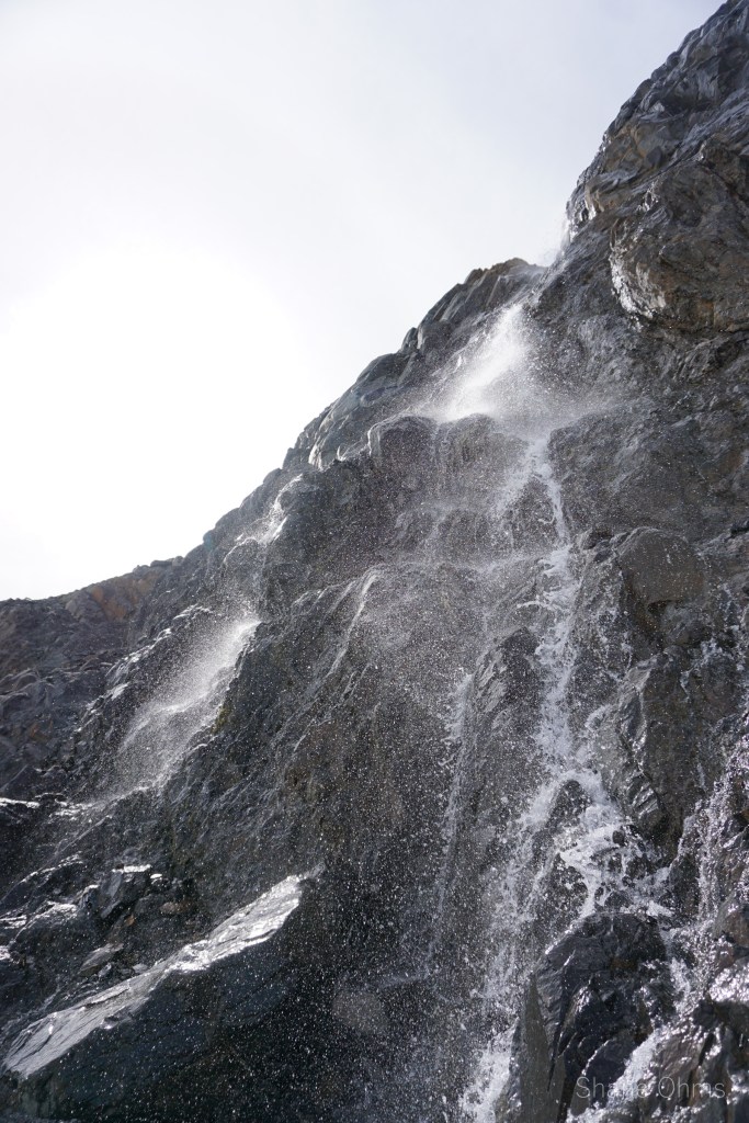 On the way to Lingon’s south face we made use of little waterfalls for replenishing depleted water supply. The south face was a mild hike. The amazing views, I’m sad to say, were getting repetitive at this point of the trip. Two views that stood out was Kinnikinnick Mountain, and a beautiful teal lake due north. This lake would make a beautiful campsite. Lingon, would be an easy dayhike and you’d have a more interesting objective, Highbush, also in the vicinity.