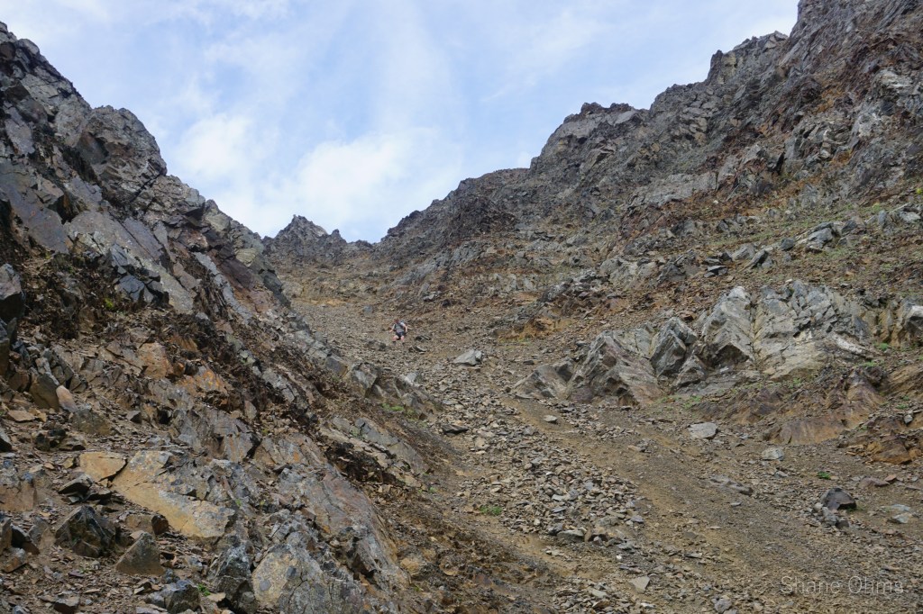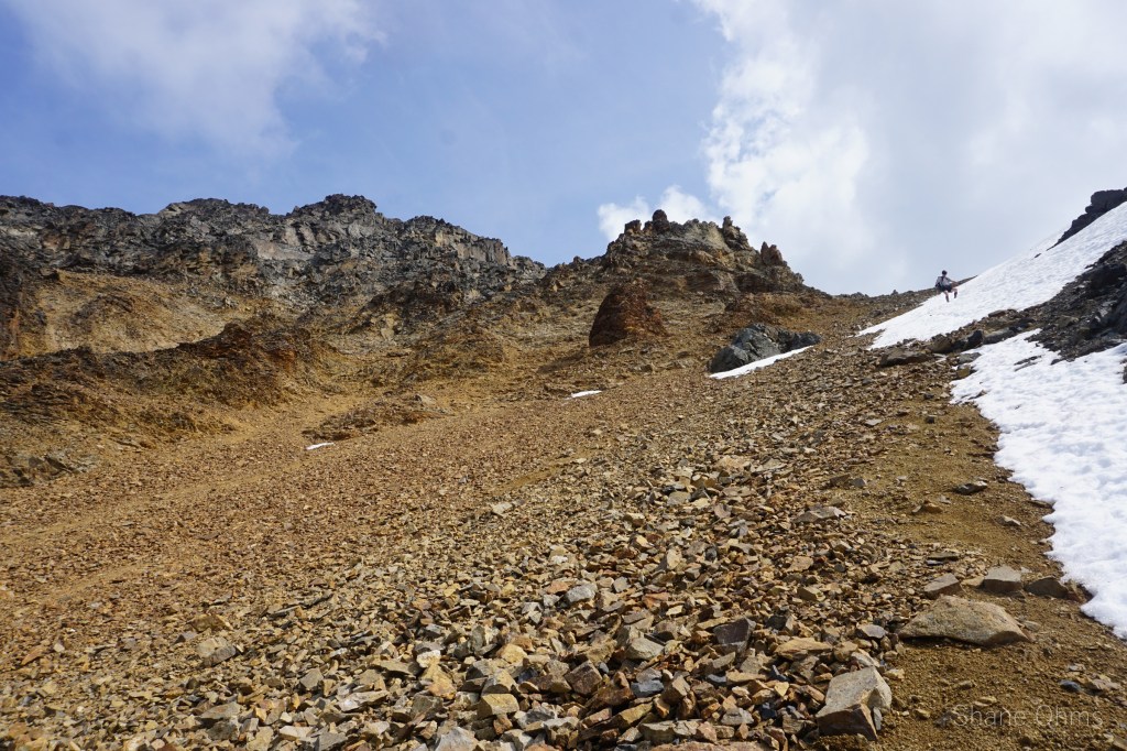I stashed my pack somewhere down low and went unweighted for the SW ridge of Livermorium Peak. It went well enough, but for the descent I chose a west face gully which I had needless been skeptical of when picking my ascent route: It scree’d great!