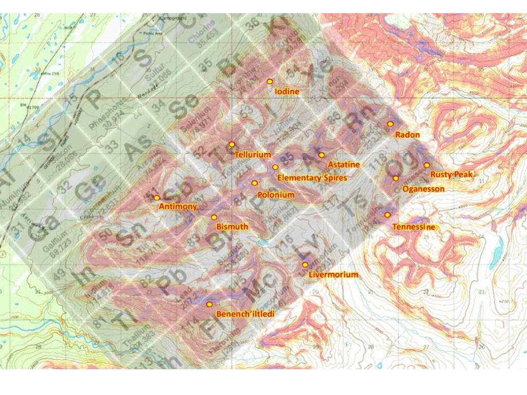 In 2019 I’d taken a liking to a particular cluster of mountains south of Cantwell that I’d deem as the “Elementary Peaks” based off an overlain periodic table revolving around the only printed peak name for miles; Antimony Peak. My friend Ian and I tried to ski one of them in April 2019, but it wasn’t the best of weather (video below). These peaks long sat for a full year till June 2021 when I went for Benench’iltledi Peak with Marianna Malory and succeeded in gathering needed recon photos ( https://fromrockstorivers.com/2021/12/27/the-west-ridge-of-benenchiltledi-peak/ ).