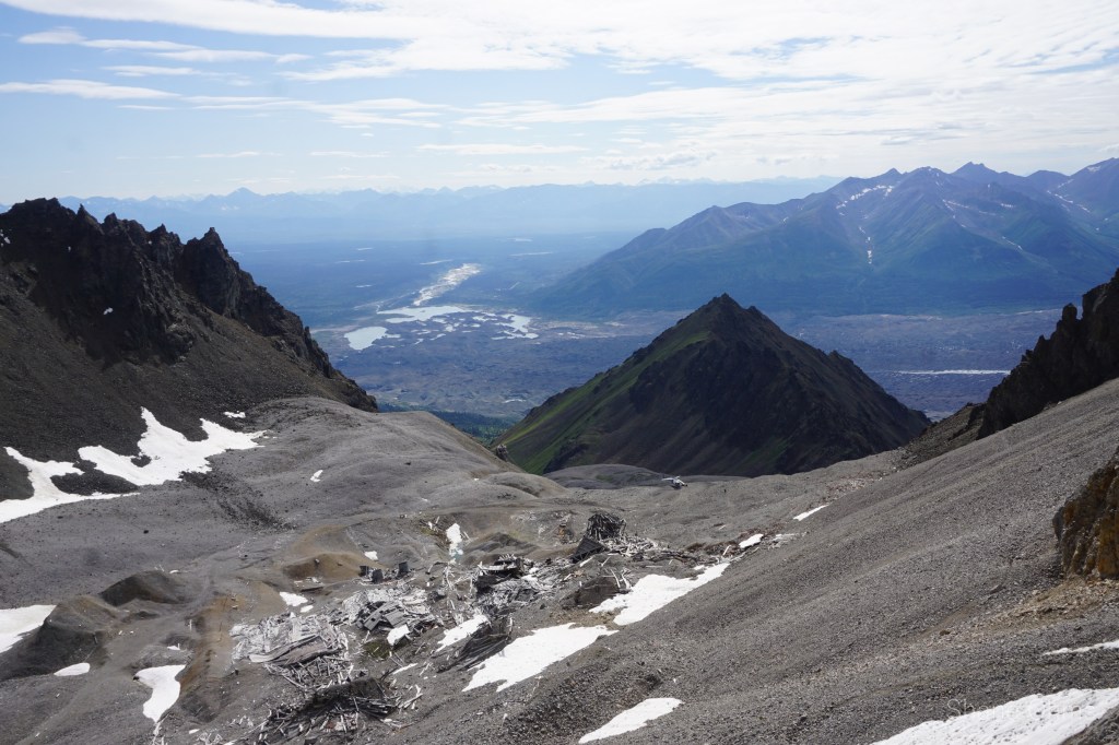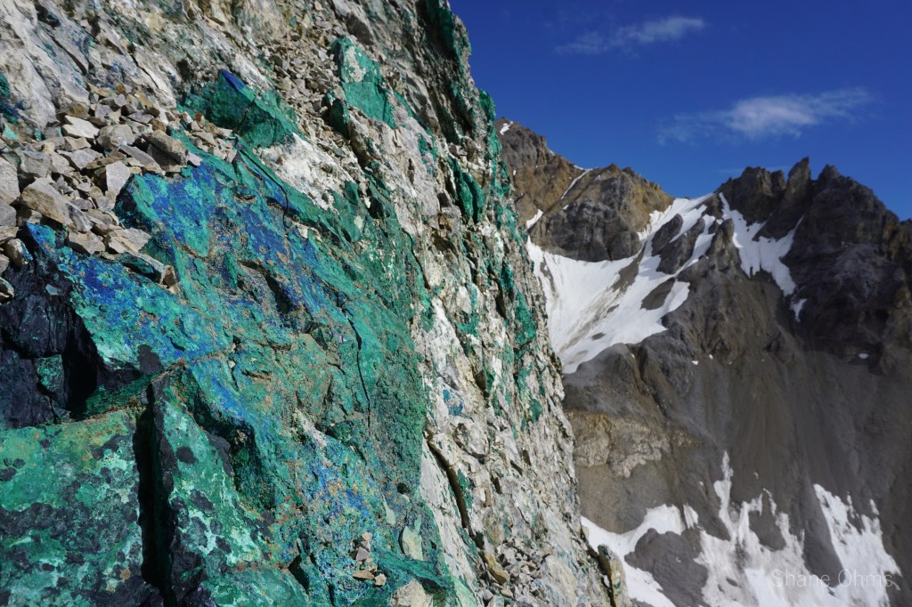 For this trip, Rowland, his girlfriend, and his dog “Fox”, and myself drove down to McCarthy. Jumbo Mine was the selected hike as something of moderate size for the day and on a previous trip up Bonanza Peak I had noticed in my photos a visible green patch of ore. Being visible on the camera indicated to me it must be large and I was curious of it, visiting Jumbo Mine would be able to put the curiosity to rest.